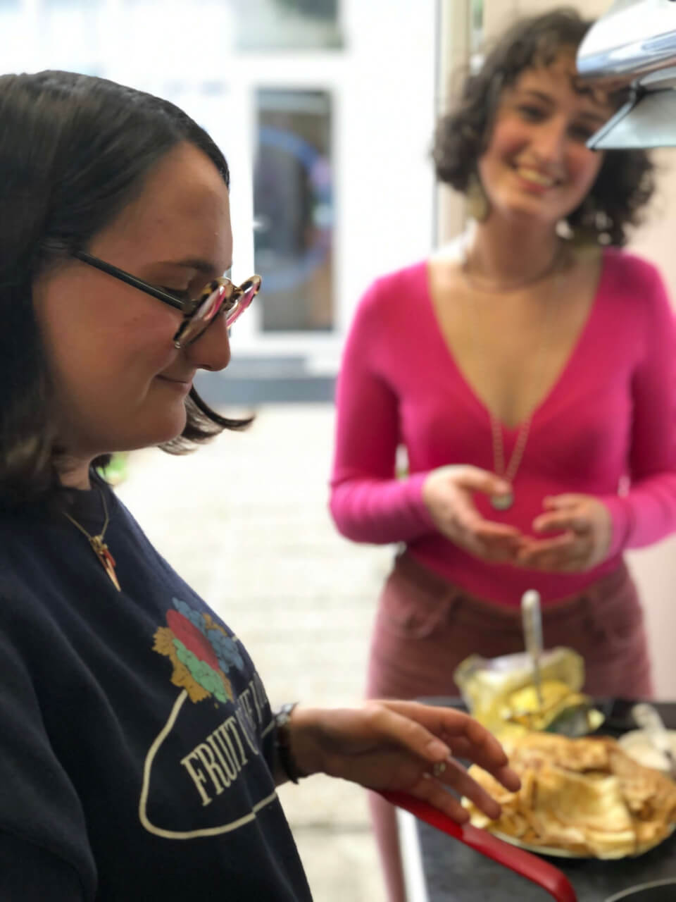 Ce mardi 17 octobre 2023, Constance et Capucine, « chargées de mission Merispi », ont organisé un goûter crêpes (les chargées de mission sont des anciennes étudiantes du foyer, ou des étudiantes de deuxième année qui s’engagent dans « l’animation Serviam » auprès des étudiantes plus jeunes) !